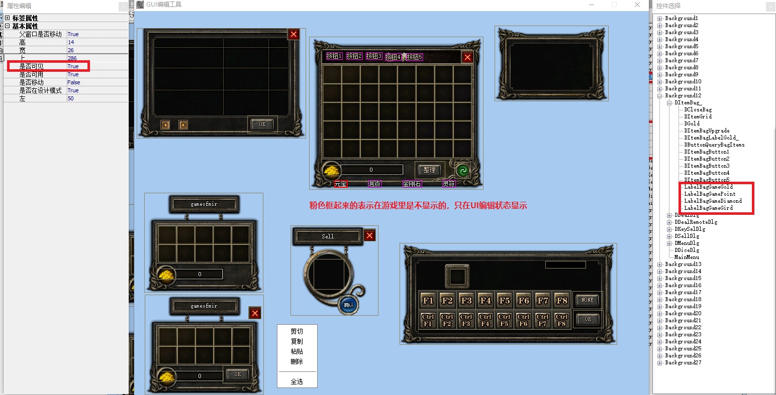 增加包裹上面显示元宝、泡点、金刚石、灵符(UI默认是隐藏不显示的,需要配置登录器的时候,修改UI才能显示)