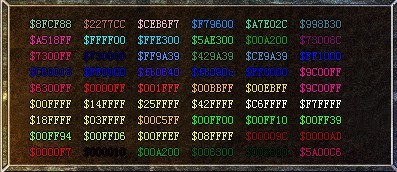 <COLOR=$123456 你好!> //$表示16进制